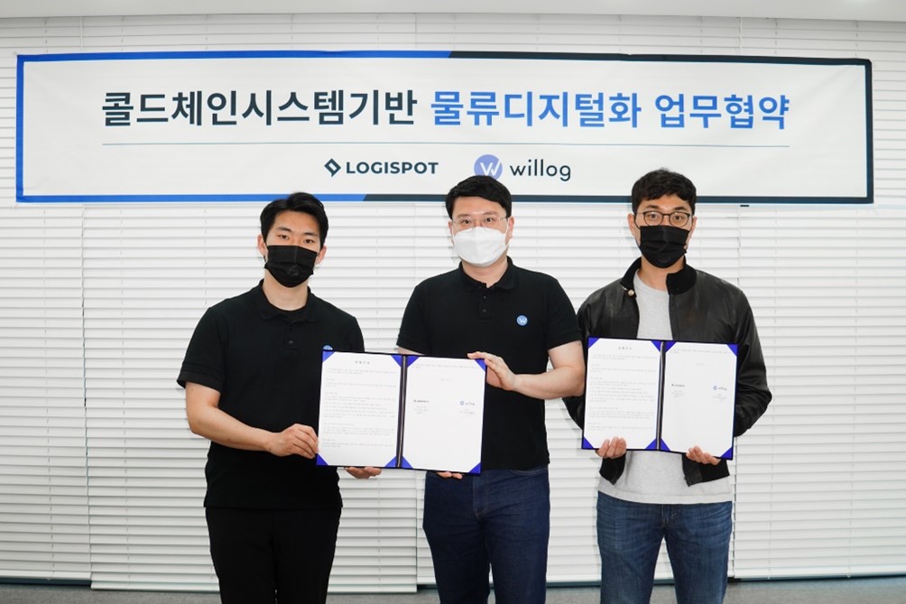 국내 1위 디지털 통합 물류 서비스 기업 로지스팟㈜ (www.logi-spot.com 공동대표 박재용, 박준규)이 물류관리 솔루션 전문기업인 ‘윌로그’ (https://willog.io/ 공동대표 배성훈, 윤지현)와 ‘콜드체인 시스템 기반의 물류 디지털화’를 위한 업무 협약을 체결하였다고 11일 밝혔다.