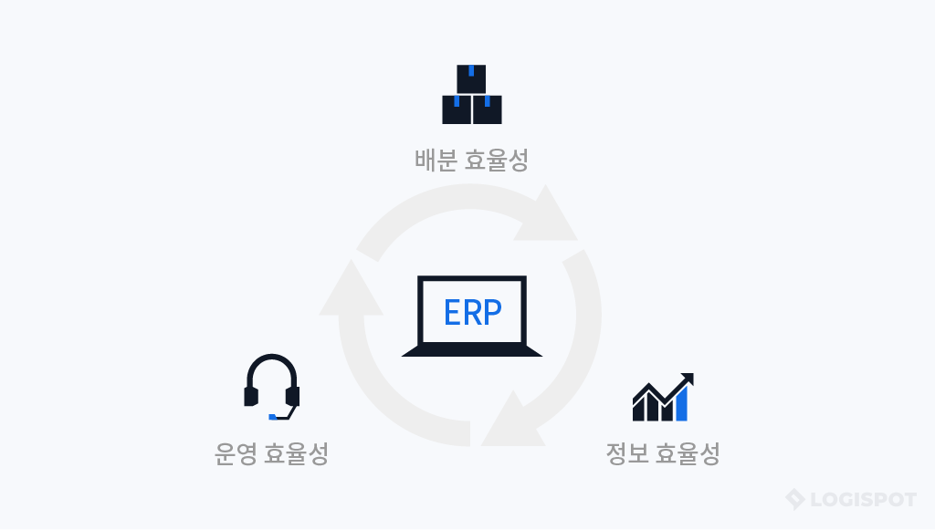 ERP 도입으로 기업은 운영, 배분, 정보의 효율성을 얻을 수 있다.