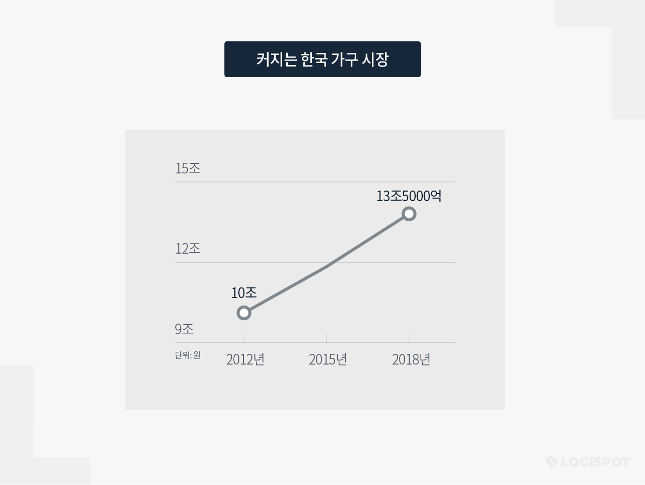 이렇듯 가구산업의 규모는 점점 커지지만 국내 상황은 좋지만은 않습니다. 인지도 높은 소수 업체를 제외하면 이케아 같이 규모의 경제를 실현하는 글로벌 가구업체와 경쟁하기가 어렵습니다. 업체들은 유니크한 제품으로 다양한 소비자 기호를 맞추려고 하는 동시에 기존 시스템 효율화로 운영비를 절감해 가격경쟁력을 갖추기 위한 노력을 기울이고 있습니다. 이번 아티클에서는 그 노력 중 하나인 물류운송에서의 비용절감을 알아보려고 합니다.