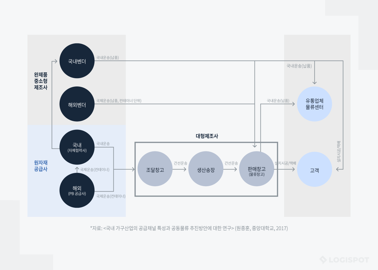 2017년 기준 국내 가구산업의 물류비 규모는 약 1조823억원 수준입니다. 이 물류비는 인건비, 유료도로 통행료, 유가 인상에 맞춰 꾸준히 상승 중입니다. 기업 입장에서는 물류비를 좀더 합리적으로 지출하면 좋겠습니다만 그 과정이 복잡해 선뜻 손 대기가 어렵습니다.