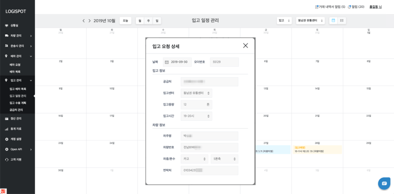 로지스팟만의 입고관리시스템의 가장 큰 장점은 ‘사전입고관리’ 기능을 사용할 수 있다는 점입니다. 자사의 창고나 물류센터에서 수용 가능한 시간과 입고량(capacity)를 사전에 설정하고, 공급처에서는 해당 수용범위 내에서 사전에 입고 예약을 수행할 수 있습니다. 플랫폼에서 기업과 공급사가 함께 정보를 공유하면서 사전에 물류 입고를 예약하고 관리할 수 있는 기능은 국내에 유일합니다. (2019년 12월 기준)