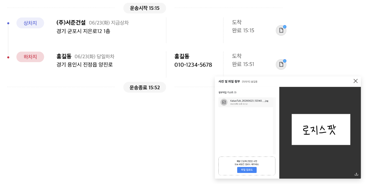 로지스팟 바로운송 화면 모습. 실시간 운송을 확인할 수 있다.