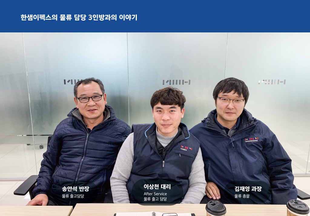상천님 : 과장님이 얘기하신 것처럼 지금 로지스팟 시스템에 한샘이팩스 담당자들 다 등록이 되어 있어서 본인들이 보고 싶은 정보 들어가서 확인하면 되고 카카오알림톡으로 택배 발송하면 보내주는 것과 같이 쉽게 확인 할 수 있죠.