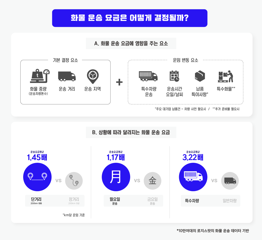 기간과 지역에 따라서 화물 운송 요금이 평소보다 높거나 낮게 느껴질 때가 있습니다.