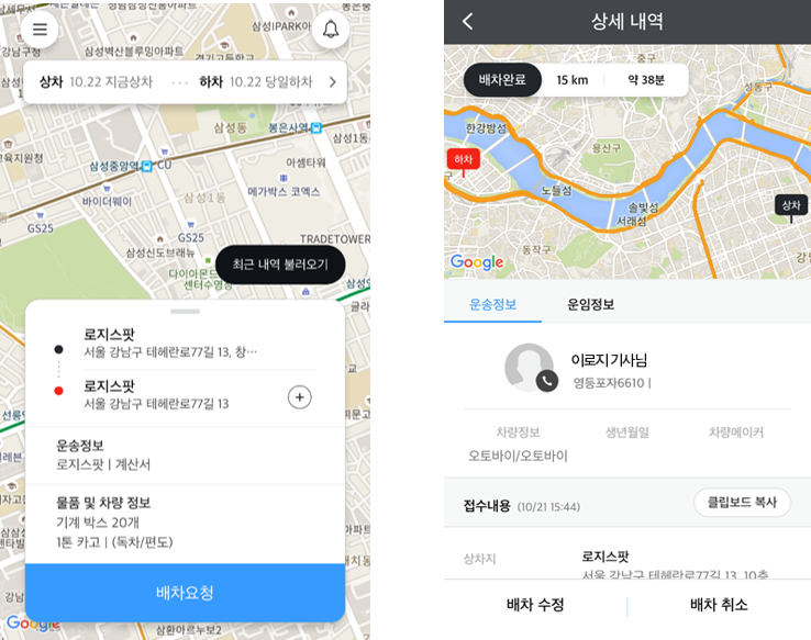 - 고객이 운송 요청과 관리에 들어가는 노력과 시간 절감, 업무 생산성 상승효과