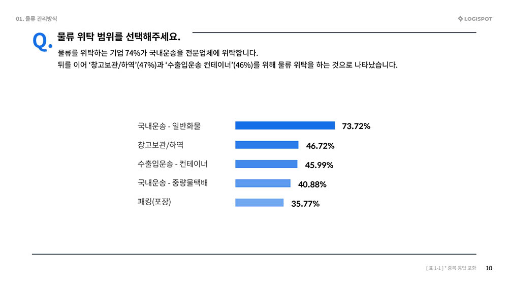 운송 요청 및 관리, 정산 및 비용 관리, 재고 관리 순으로 응답했습니다.